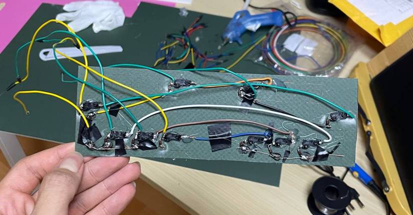키보드 스위치 컨트롤러는 하드보드에 글루건으로 회로를 고정시켜 구현했다.