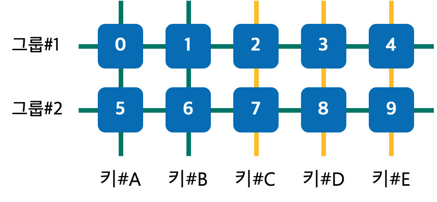 * 각 그룹을 스위치 매트릭스 상의 행으로 가정