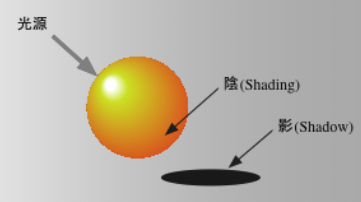 명암에 관해서는 두 가지 측면에서 깊이 정보를 확인한다. 하나는 광원으로부터의 빛의 반사와 확산 상태로, 물체 표면에서 빛이 반사되고 확산되는 양상이 재질감과 곡면의 방향을 전달하여 형태의 입체성을 읽어낼 수 있게 한다. 다른 하나는 명암(shade)와 그림자(shadow)로, 광원과 물체의 위치 관계에 따라 표면에 생기는 명암과 다른 면에 드리우는 그림자가 깊이와 입체감을 전달하는 강력한 단서가 된다.
