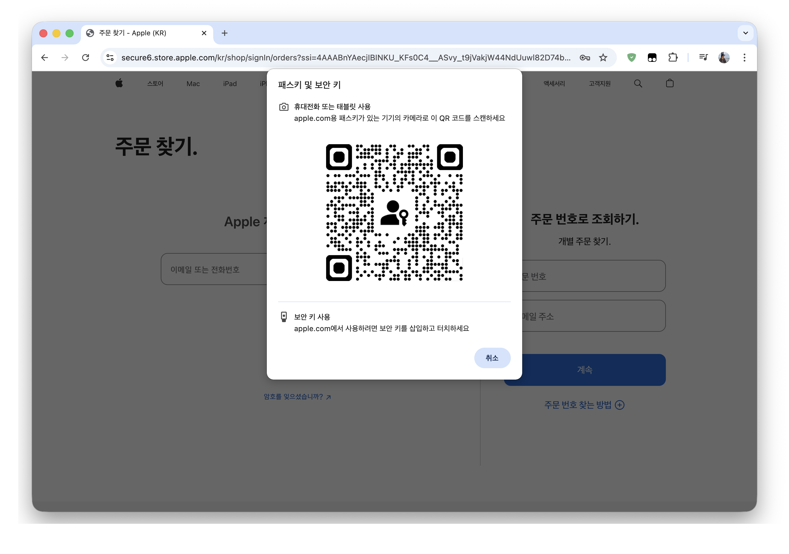 크롬에서 패스키를 이용해 애플에 로그인을 시도할 수 있는데, 이 때 구글이나 애플의 패스키가 아니라 다른 기업의 것을 사용할 수도 있습니다.