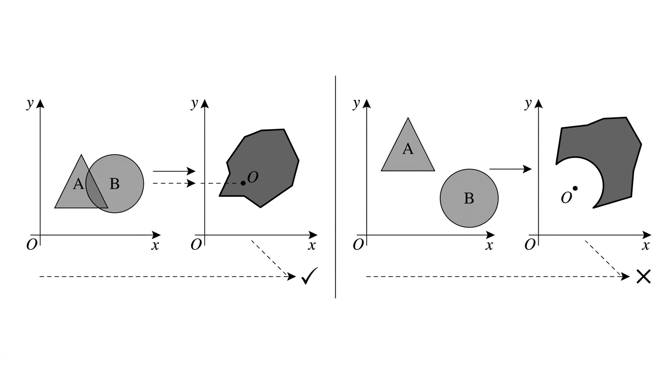 두 물체 $A$, $B$ 중 같은 좌표를 갖는 점이 존재한다면, 그 차는 영벡터 $\vec{0}$ 이 되므로, 원점(혹은 영벡터 $\vec{0}$) 이 민코프스키 차에 포함된다는 것은 두 물체가 겹친다는 것을 의미한다. 다시 말해 두 물체가 충돌하는 경우, 민코프스키 차는 원점을 포함하게 된다. 반대로, 두 물체가 충돌하지 않는 경우, 민코프스키 차는 원점을 포함하지 않는다.